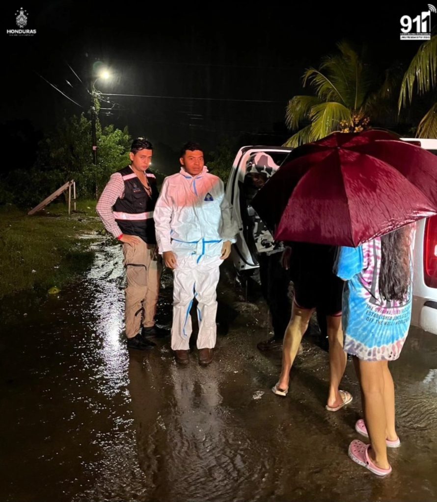CECOP-Tela, personal del Sistema Nacional de Emergencias 911 en Tela continúa con las labores de vigilancia, monitoreo, asesoramiento y evacuación a las personas que se encuentran en zonas de riesgo. El objetivo principal es salvaguardar la vida y seguridad de la población.