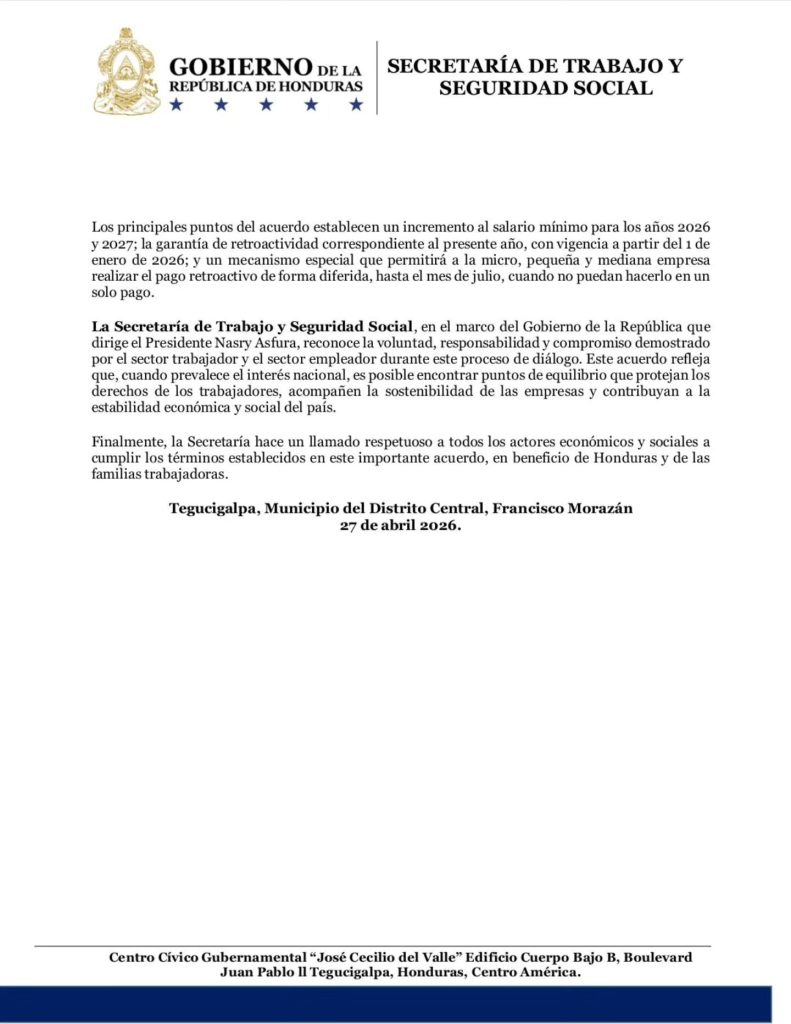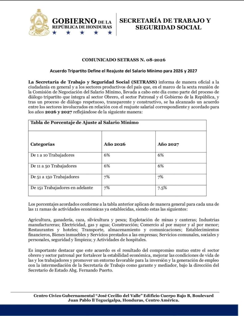 El acuerdo tripartito entre Gobierno, empresa privada y sector obrero establece incrementos salariales con retroactividad desde enero de 2026 y mecanismos de pago para las MIPYMES.