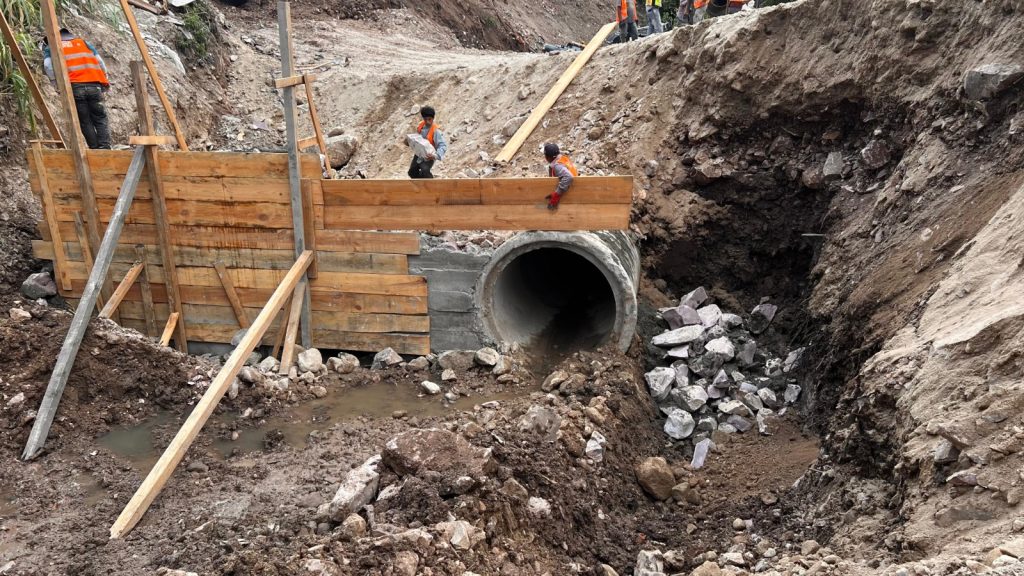 Ante esa situación, los equipos municipales instalaron 40 metros de tubería de 60 pulgadas de concreto reforzado en esta vía provisional.