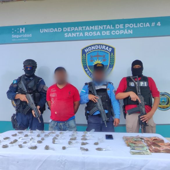 Durante la inspección en su domicilio, se descubrieron 37 envoltorios transparentes con presunta marihuana valorada en 4’000 Lps, además, se incautó un teléfono celular que, tras una revisión, reveló una red de contactos relacionados con la compra y venta de drogas, proporcionando pistas cruciales para seguir desmantelando la cadena de distribución.