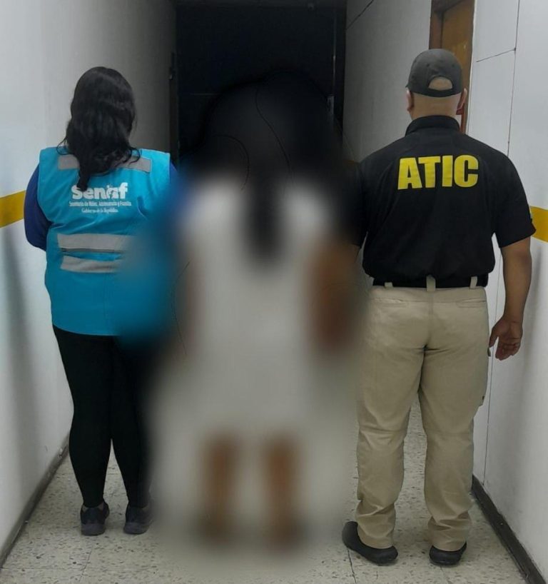 La niña se encontraba en compañía de una mujer identificada como Agustina Martínez Vásquez que luego de verificar sus generales, se detectó que tenía emitida una orden de captura por los delitos de trata de personas en la modalidad de explotación sexual y cómplice de violación agravada continuada por otro caso; por lo que se procedió a su detención.