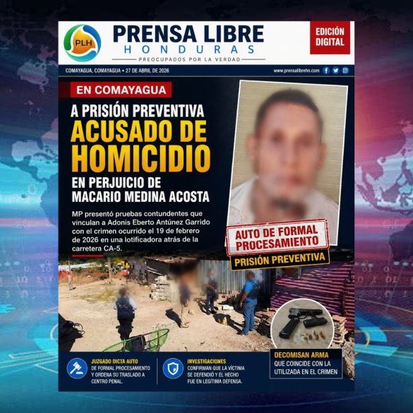 Comayagua, Comayagua.– El Ministerio Público (MP), a través de la Fiscalía Especial de Delitos Contra la Vida (FEDCV), logró que un juez dictara auto de formal procesamiento con la medida cautelar de prisión preventiva en contra de Adonis Eberto Antúnez Garrido, señalado como supuesto responsable del delito de homicidio en perjuicio de Macario Medina Acosta.