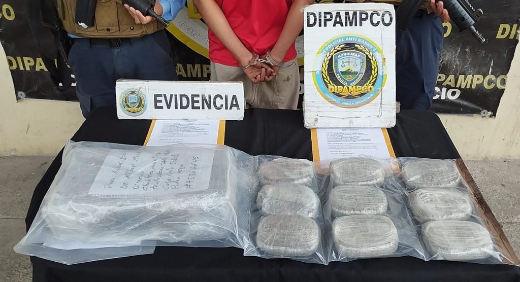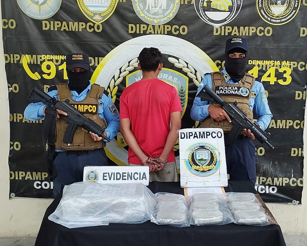 Como resultado de estas diligencias, en una operación ejecutada en la comunidad de El Triunfo, en el departamento de Choluteca, equipos especiales de la DIPAMPCO lograron la captura de Osman David Ochoa Maradiaga, de 19 años de edad, quien presuntamente tenía la función de recibir paquetes que contenían supuesta droga enviados bajo la modalidad de encomienda.