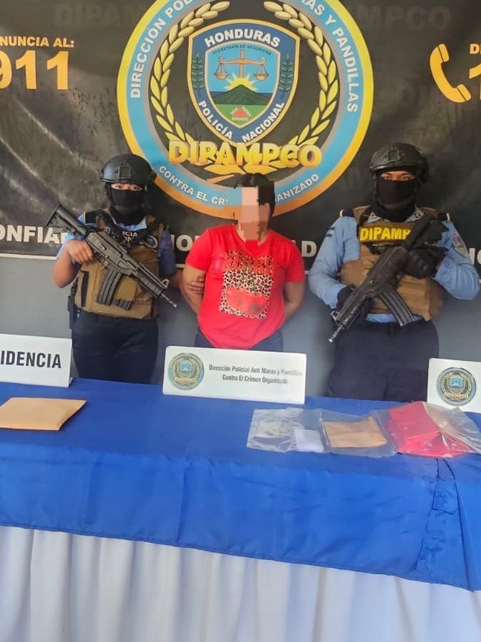 San Pedro Sula, Cortés, 22 de diciembre del 2025. – En una operación de impacto, y tras varios días de vigilancia y seguimiento, en el pasaje Junior, de la colonia Bográn de San Pedro Sula, Cortés, agentes de la Dirección Policial Anti Maras y Pandillas Contra el Crimen Organizado (DIPAMPCO), le dieron captura a una peligrosa extorsionadora de la pandilla 18.