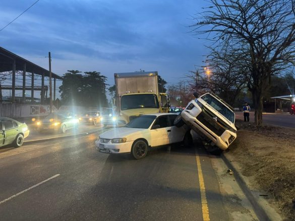 La triple colisión que dejó como saldo daños materiales, se registró en la carretera CA-5, calzada Este a la altura de la colonia Vista Hermosa en el municipio de Villanueva, Cortés.