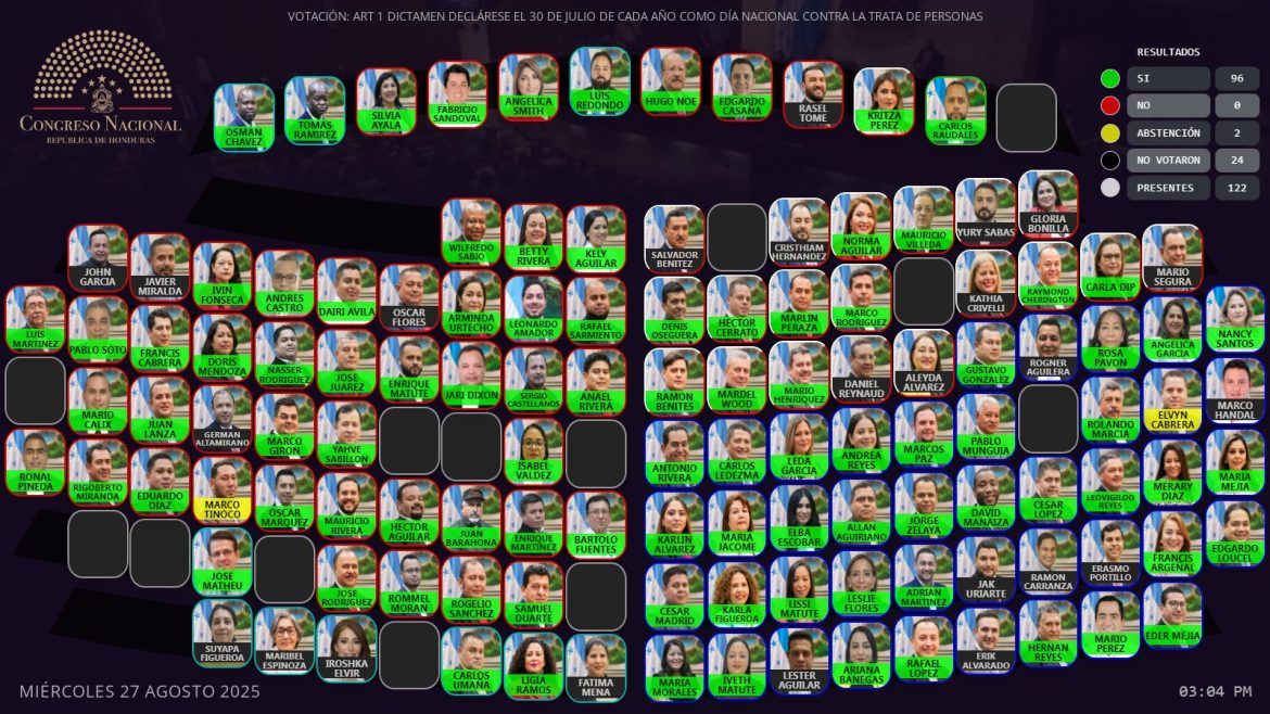El Congreso Nacional aprobó el decreto que declara el 30 de julio de cada año como “Día Nacional contra la Trata de Personas”, reafirmando el compromiso del Estado hondureño en la lucha contra este grave delito que vulnera los derechos humanos y la dignidad de las personas.