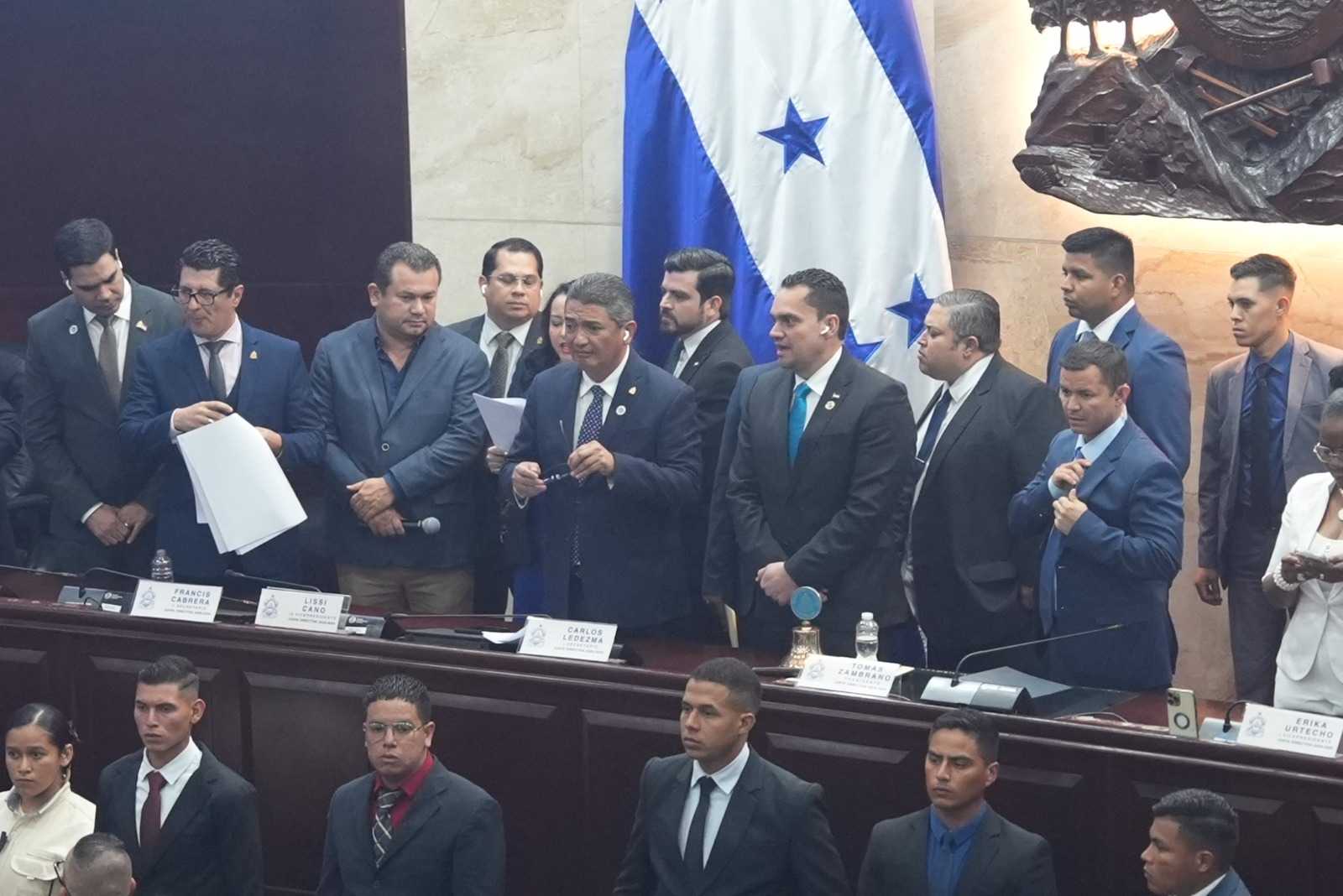 Una vez admitida la denuncia, Zambrano anunció que la comisión de nueve miembros estará integrada por los diputados Mario Pérez, quien la presidirá; Jorge Cálix, vicepresidente; Antonio Rivera Callejas, secretario, y Luz Ernestina Mejía, Kilvet Bertrand, Francis Cabrera, Maria José Sosa, Alex Berríos y Eder Mejía.