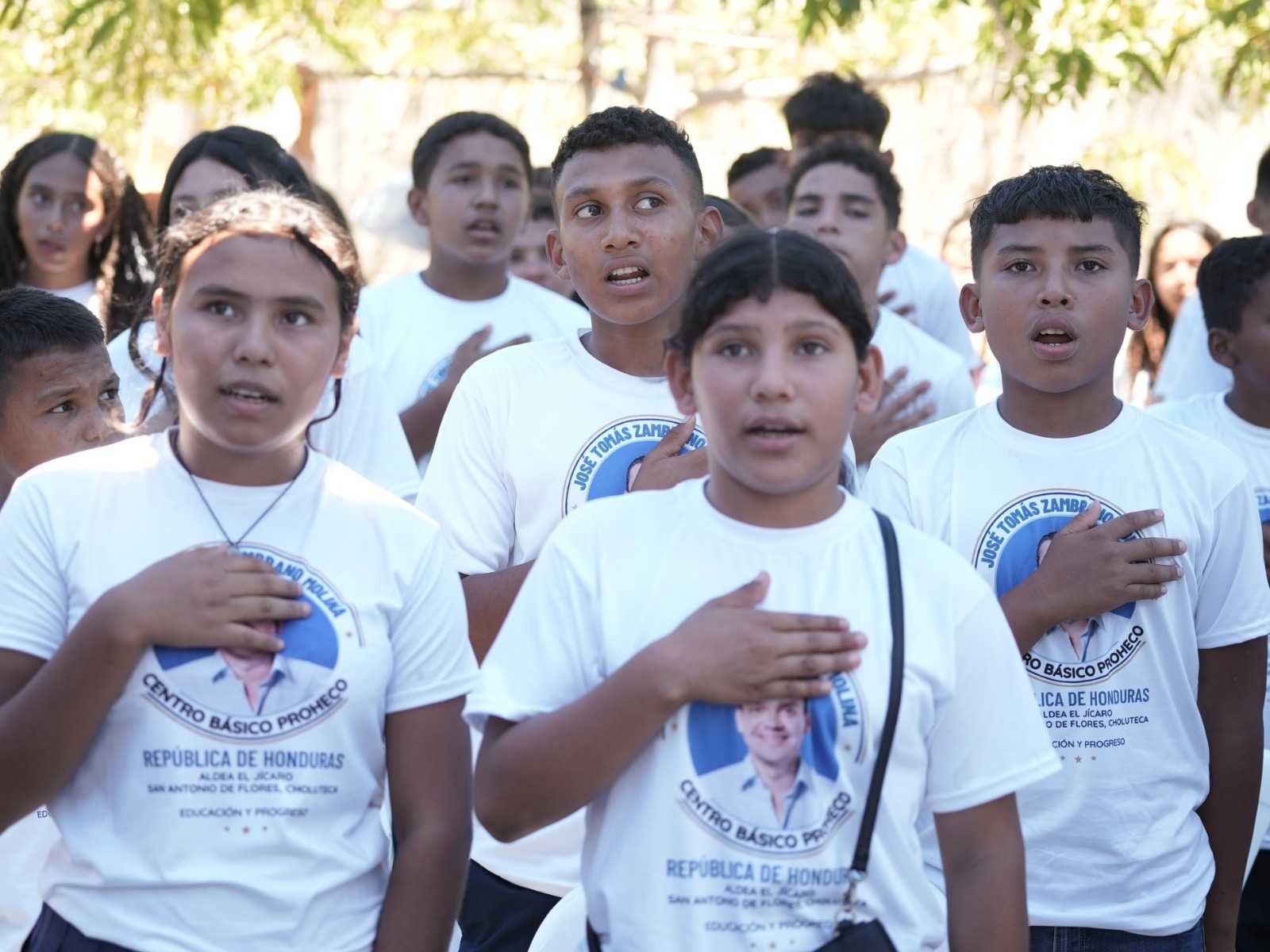 El secretario del Congreso Nacional, Carlos Ledezma; el presidente de la Comisión de Educación, Arnold Burgos, y la ministra de Educación, Ivette Argueta, inauguraron este viernes el Centro Básico Proheco José Tomás Zambrano Molina, ubicado en la aldea El Jícaro, municipio de San Antonio de Flores, Choluteca.