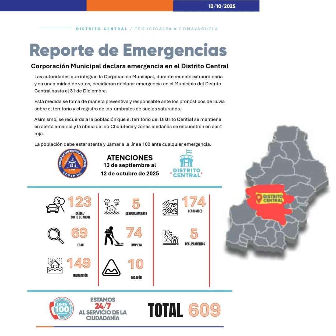Las autoridades que integran la Corporación Municipal, durante reunión extraordinaria y en unanimidad de votos, decidieron declarar emergencia en el Municipio del Distrito Central hasta el 31 de Diciembre.