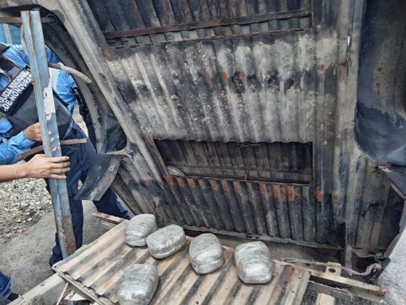 Durante la inspección del vehículo, realizada por agentes de la Dirección Policial de Investigaciones (DPI), se descubrió un doble compartimiento conteniendo 44 paquetes dobles y un paquete sencillo de hierba seca, supuesta marihuana.