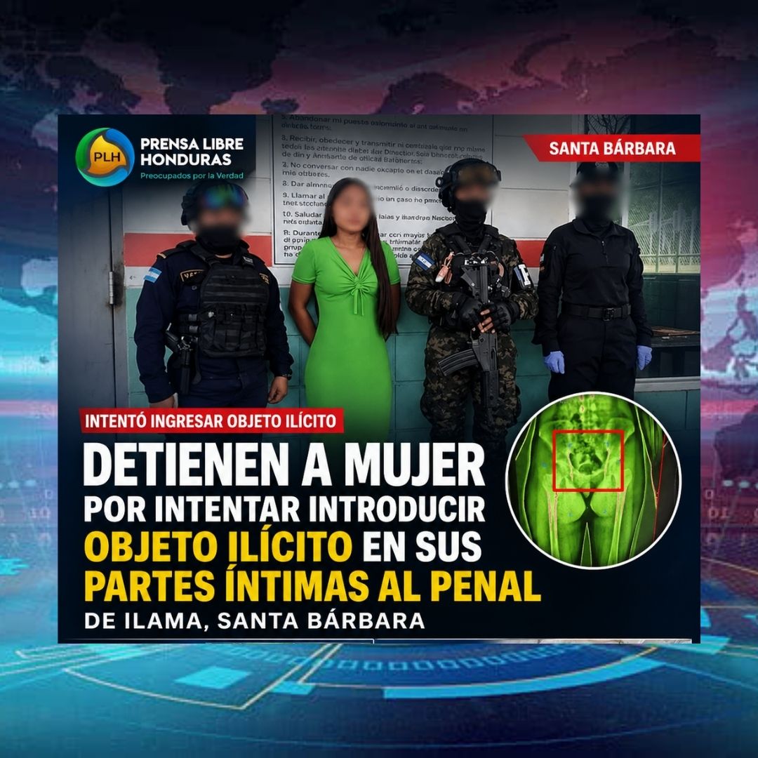 Una mujer fue detenida este día al intentar introducir un objeto ilícito oculto en sus partes íntimas al Centro Penitenciario de Ilama, en el departamento de Santa Bárbara.
