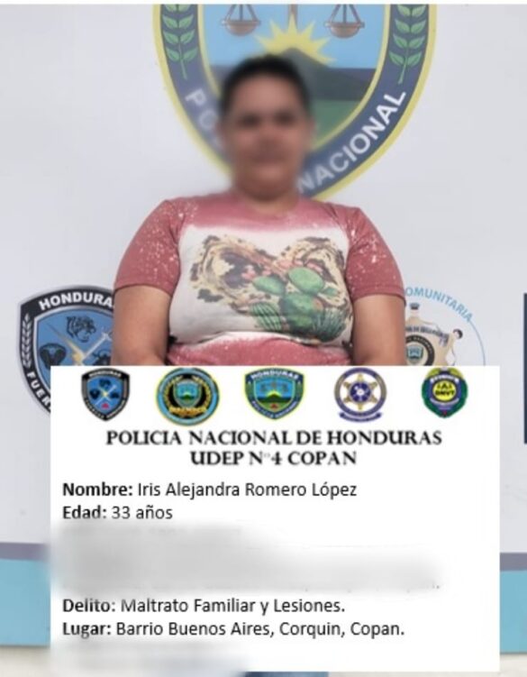 Santa Rosa de Copán, Copán. – La fiscalía Regional de Occidente logró detención judicial contra Iris Alejandra Romero López, luego de que se le presentó requerimiento fiscal por suponerla responsable de los delitos de maltrato familiar y lesiones en perjuicio de una mujer.