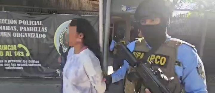 Una mujer conocida como “La Diabla”, también fue capturada, quien es miembro activo de la Pandilla 18 desde hace ocho años. Actualmente cuenta con el rango de “Hongra”, cabecilla, encargada de dar órdenes de cobros de extorsión, venta de droga. Ella había sido detenida en el 2019 por la FNAMP, en Omoa, por suponerle responsable de cometer el delito de extorsión.