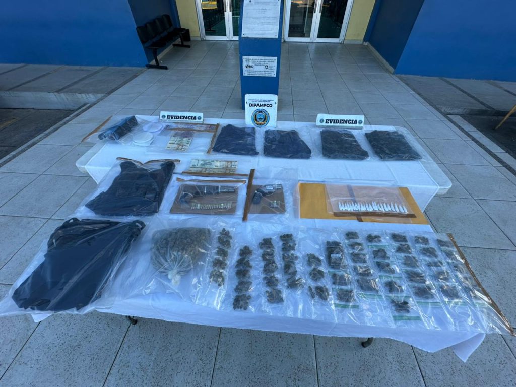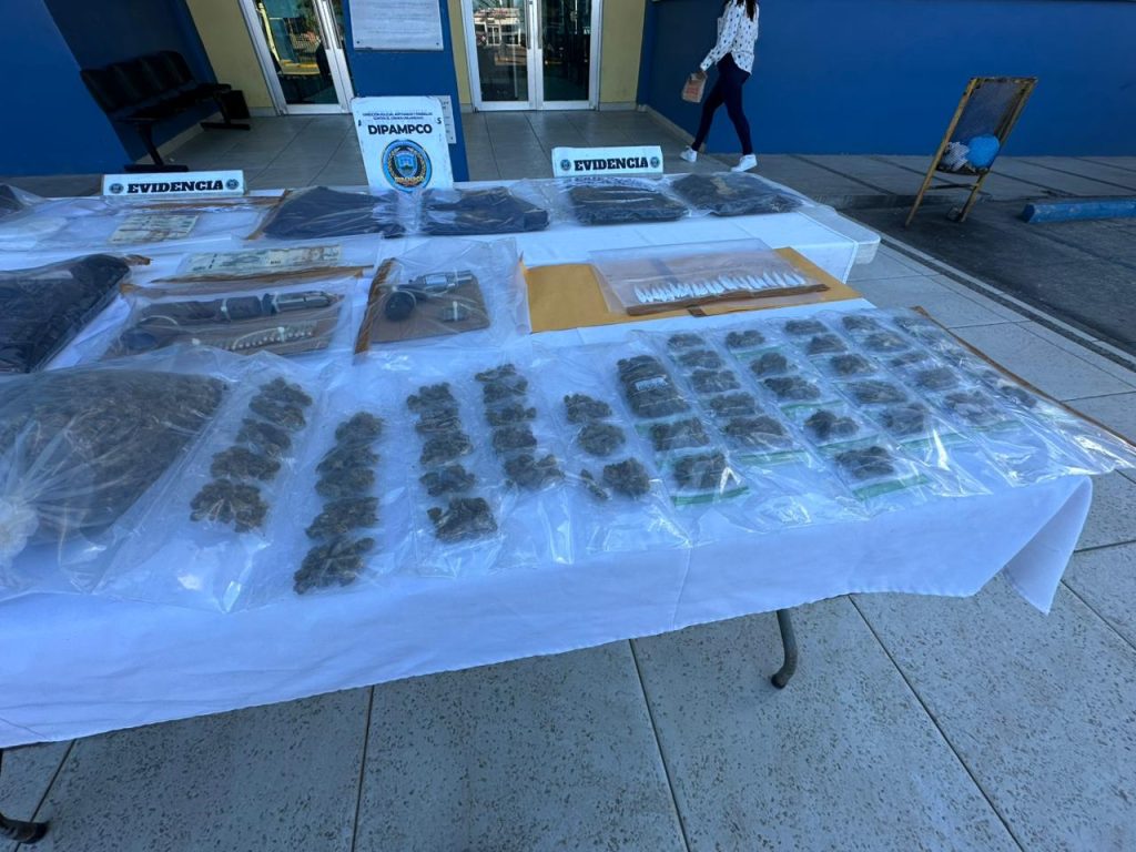 Al momento del registro de la vivienda se encontraron 51 bolsitas con hierba seca supuesta marihuana (lemon cush), y una bolsa con el mismo estupefaciente con un peso aproximado dos libras y 22 puntas con polvo blanco presunta cocaína.