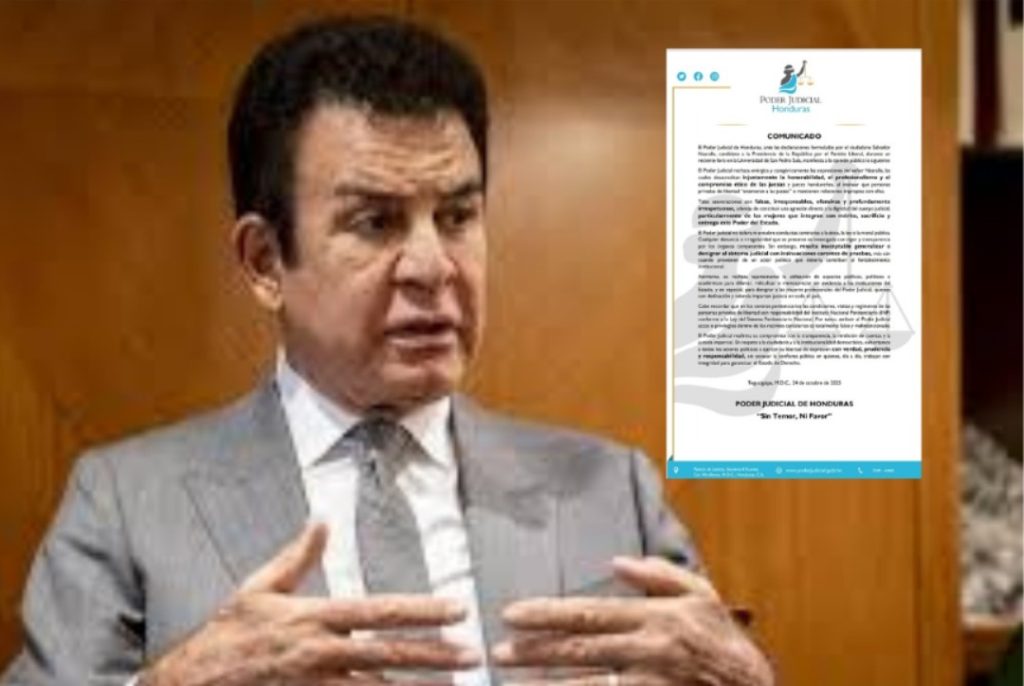 El Poder Judicial rechaza de forma enérgica y categórica las declaraciones del candidato Salvador Nasralla, que constituyen una falsedad y un agravio intolerable contra la honorabilidad de las juezas y jueces hondureños.