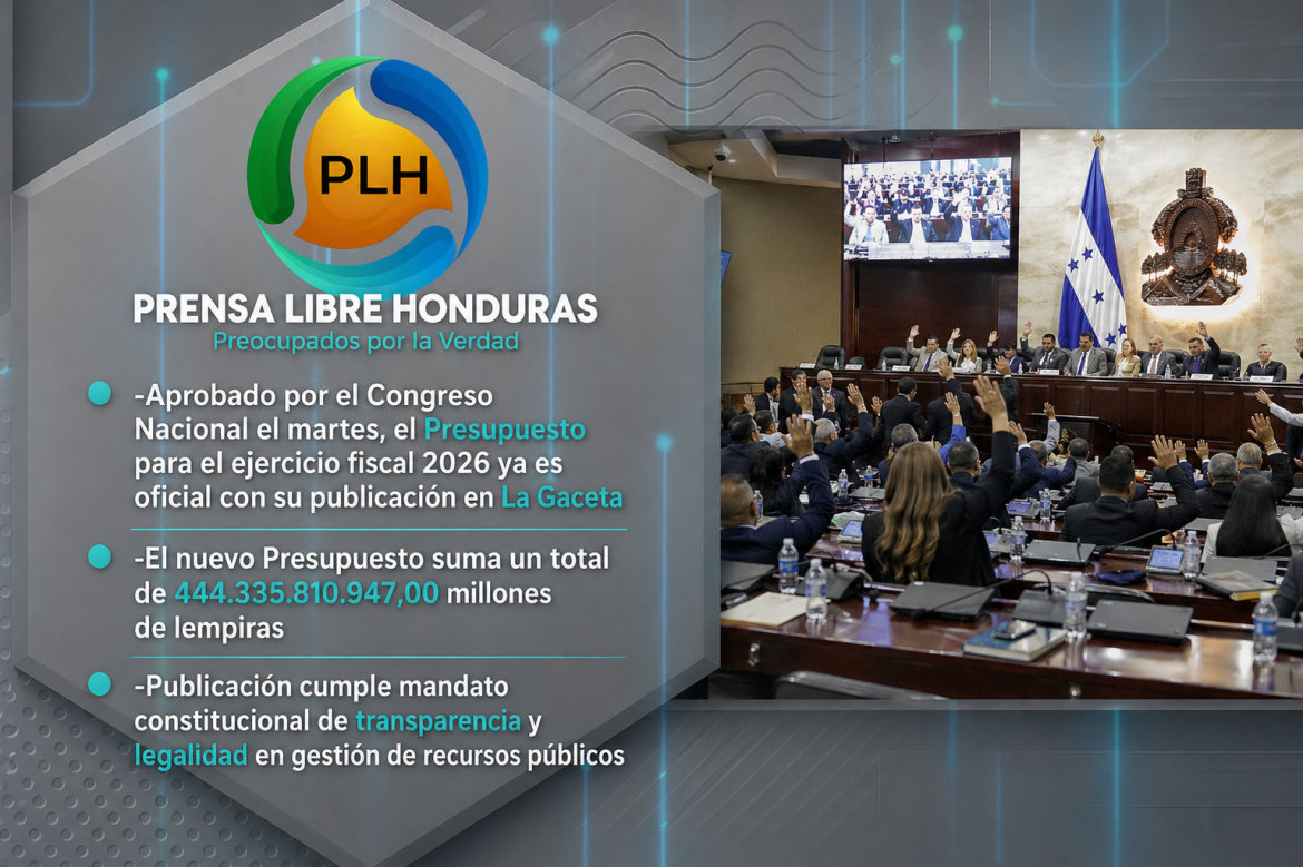 El Presupuesto General de la R_epública, aprobado el martes por el Congreso Nacional por un total de 444.335.810.947,00 millones de lempiras, entró en vigor al ser publicado en el Diario Oficial La Gaceta con fecha del jueves 23 de abril de 2026, cumpliendo con el mandato constitucional de transparencia y legalidad en la gestión de los recursos públicos.