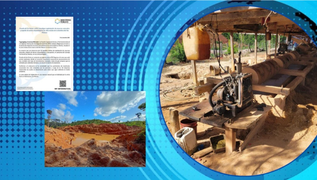 Fiscales de las Etnias en conjunto con agentes de la ATIC llegaron a la zona que está siendo explotada, dónde se encontró maquinaria industrial de procesamiento de oro, también otro tipo de herramientas manuales, tubos de gas propano que es utilizado para ablandar metales y se encontró rastros de explosivos.