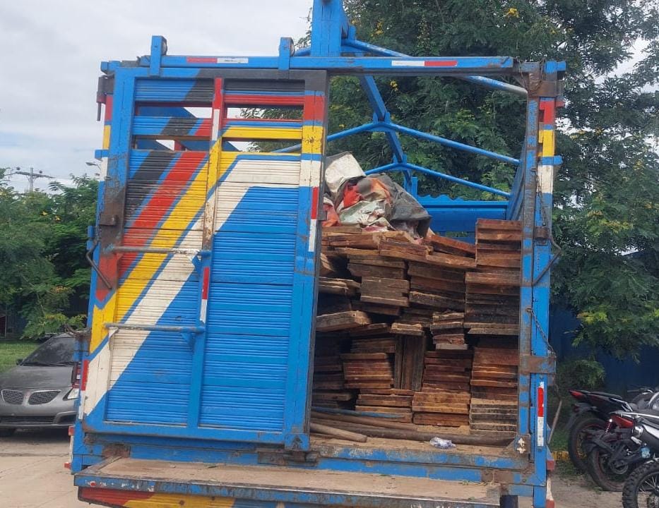La acción policial se desarrolló en la aldea Valle de Ángeles, jurisdicción del municipio de Comayagua, luego de que varios ciudadanos, al percatarse de la presencia policial en la zona, abandonaran el automotor cargado con el producto forestal.