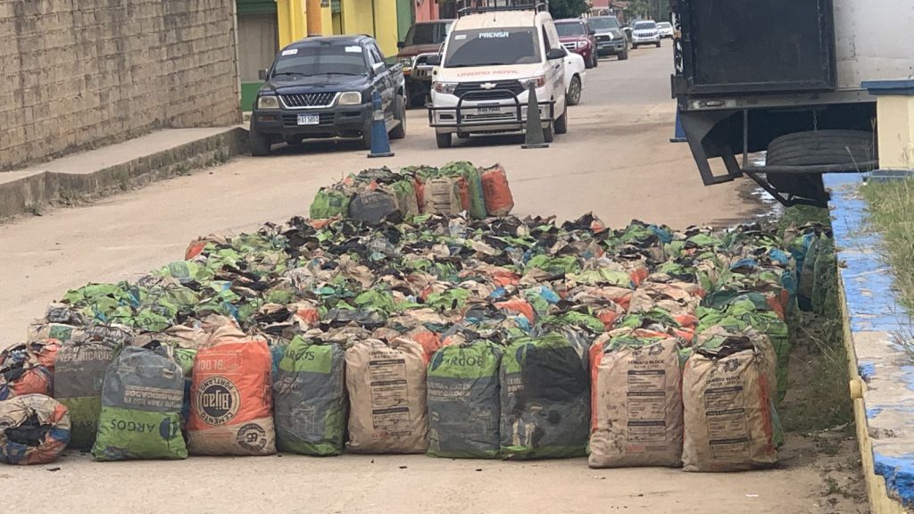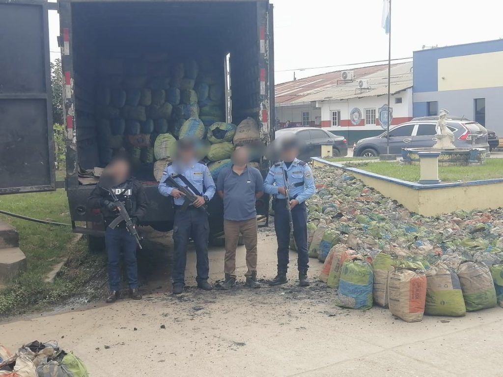 Los uniformados en una rápida acción procedieron a realizar un registro en el vehículo tipo camión y se le encontró un aproximado de 600 bolsas de producto tipo carbón sin su documentación.