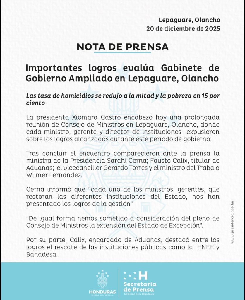GABINETE DE XIOMERA CASTRO LLEVÓ A CABO EN LEPAGUARE, OLANCHO, LOS PRINCIPALES LOGROS ALCANZADOS DURANTE EL PERÍODO DE GOBIERNO DE LA PRESIDENTA
