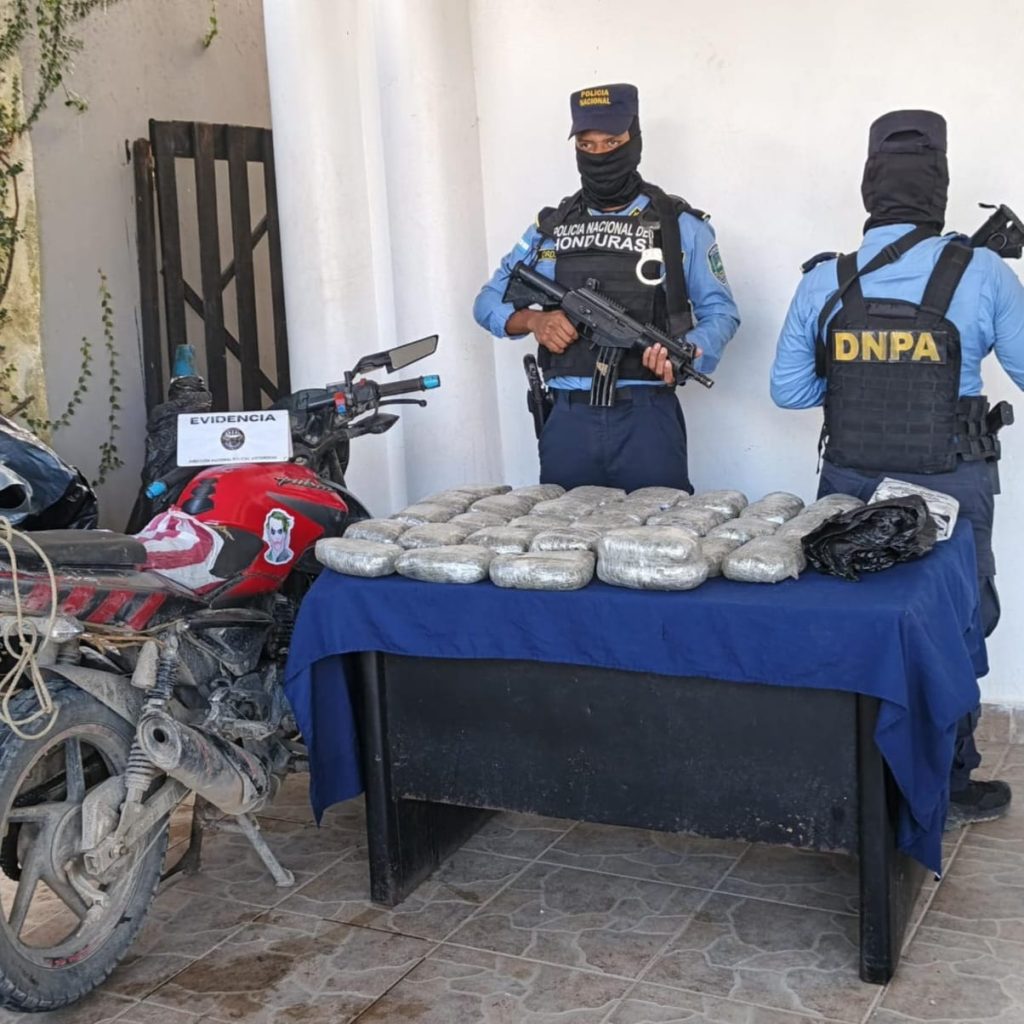 Durante la operación, agentes policiales inspeccionaron un vehículo tipo motocicleta y requirieron a un ciudadano de 41 años, originario de Tocoa, Colón, y residente en la colonia Briche, aldea Zamora de ese mismo municipio, por suponerlo vinculado al delito de tráfico de drogas en perjuicio del orden público.