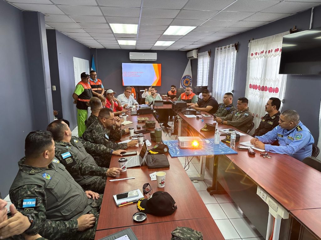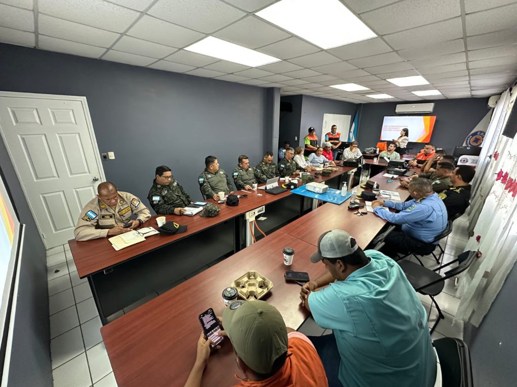 La Ceiba, Atlántida: Con el propósito de fortalecer las acciones preventivas durante la temporada de lluvias, colaboradores de la Regional I de COPECO, miembros de las Fuerzas Armadas, alcaldías, comités de emergencia municipales, Secretaría de Infraestructura y de Educación sostienen reunión.