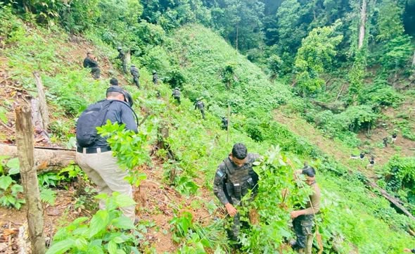La información detalla que se logró incautar unas 363 mil 200 plantas de marihuana y 208 mil 355 de hojas de coca, que estaban cultivas en unas 56 manzanas de terrenos, en los cuales figuraban cultivos de 21 mil 900, 28 mil 600, 34 mil 300, 27 mil 950, 25 mil y 24 mil plantitas de hoja de coca.