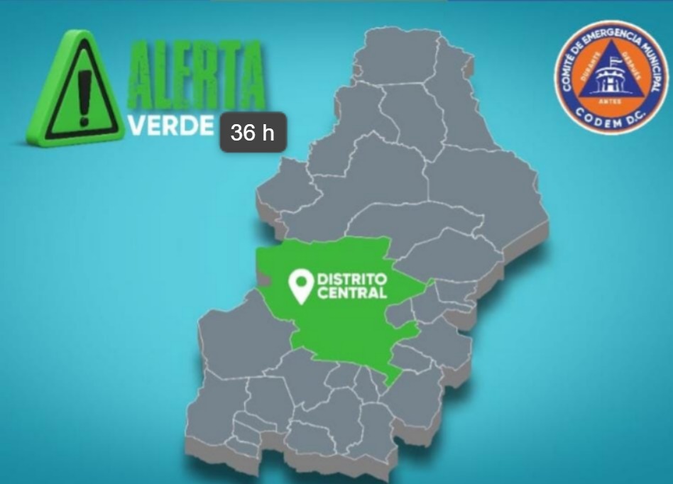 La Alcaldía Municipal del Distrito Central (AMDC), de acuerdo a sus atribuciones en la Ley de Municipalidades y el SINAGER, a través del Comité de Emergencia Municipal (Codem), mantiene en ALERTA VERDE por 36 horas el Distrito Central a partir de las 12:00 del mediodía de este sábado 20 de septiembre del año en curso, debido a que se mantienen los pronósticos de lluvias para el municipio.