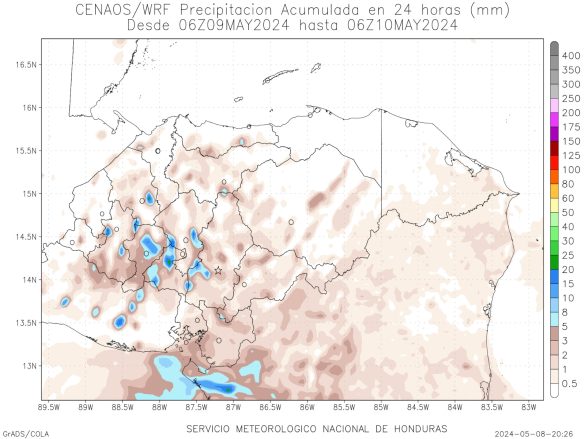 Tendremos condiciones secas y estables en horas de la mañana sobre la mayor parte del territorio nacional, por la tarde la Convergencia de viento y humedad proveniente del Mar Caribe y el Océano Pacífico, producirán lluvias y chubascos débiles a moderados con actividad eléctrica sobre aéreas de las regiones: Suroccidente, Sur y Central, demás regiones precipitaciones débiles y aisladas.
