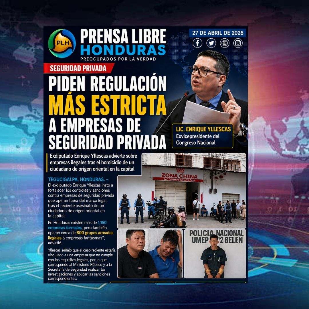 Tegucigalpa, Honduras. — El exdiputado al Congreso Nacional y exvicepresidente de ese poder del Estado, Lic. Enrique Yllescas, hizo un llamado a fortalecer los mecanismos de control y sanción contra empresas de seguridad privada que operan fuera del marco legal, tras el reciente asesinato de un ciudadano de origen oriental en la capital.
