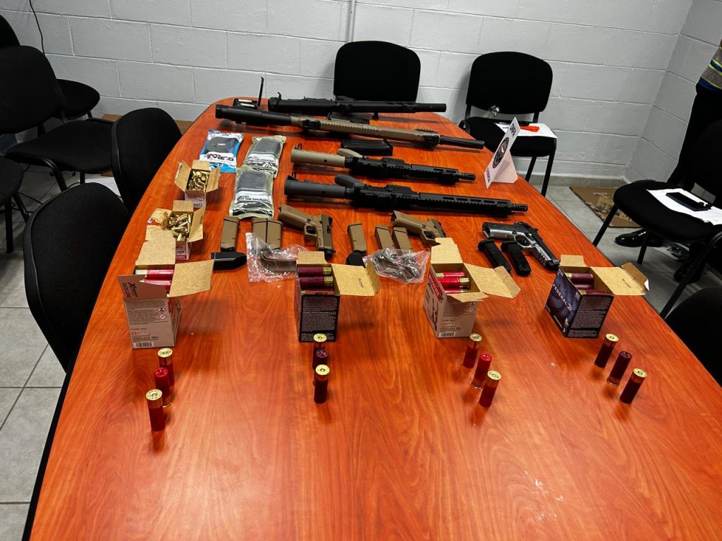 El inventario de los indicios confirma la dimensión del cargamento: dos fusiles de asalto AR-15, dos escopetas semiautomáticas, tres pistolas calibre 9 mm, 13 cargadores y cientos de cartuchos de diversos calibres, así como accesorios para armas de fuego.