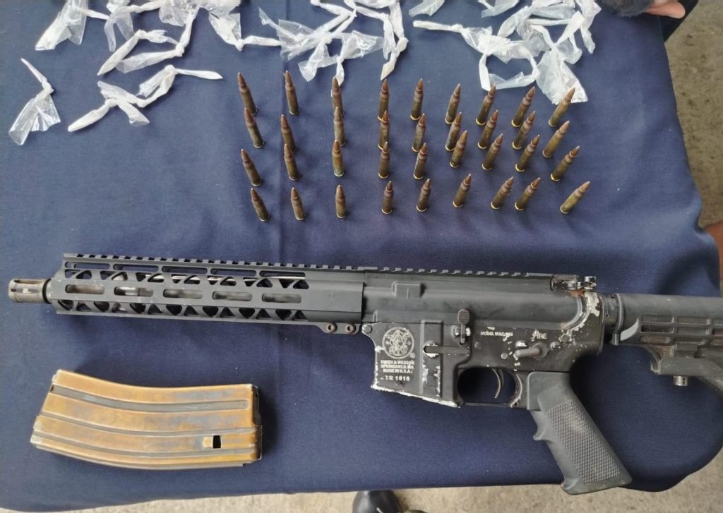 Durante la intervención policial se le decomisó lo siguiente: un fusil tipo AR-15, marca Smith & Wesson, un proveedor con 36 proyectiles calibre 5.56, con la leyenda Policía Nacional, de acuerdo con información obtenida mediante labores de inteligencia e investigación, el detenido, conocido con el alias “El Tarsan”, sería presunto miembro activo del Grupo Delictivo Organizado Mara Salvatrucha (MS-13) desde hace aproximadamente cinco años, y estaría vinculado a actividades ilícitas como la distribución de droga y el robo de motocicletas en el sector de la colonia Cantarero López.
