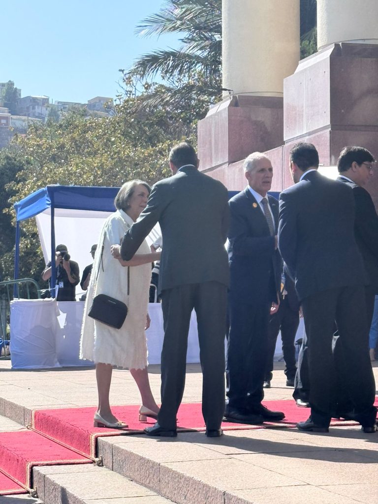 Posteriormente, los mandatarios y las delegaciones internacionales participaron en el saludo oficial y recepción ofrecida en el histórico Cerro Castillo una de las sedes oficiales del gobierno chileno, donde se reafirmaron los lazos de amistad y cooperación entre ambas naciones.