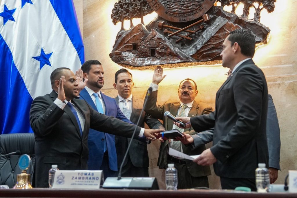 28 El presidente del Congreso Nacional, Tomás Zambrano, juramentó a la Comisión Interventora para la Universidad Nacional de Agricultura (UNAG). Javier David López Padilla (presidente). Ramón Cárcamo Rivera. Olvin Álvarez Rodríguez. Luis Mejía Calix. Ernesto Cornejo Ortiz.