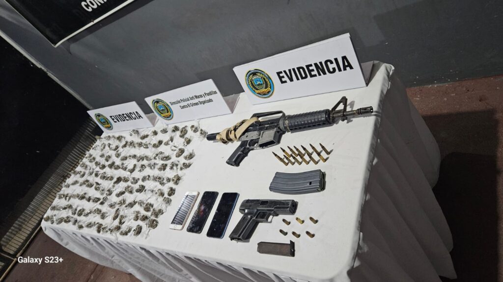 Durante la operación, se les decomisaron armas de guerra, entre ellas un fusil AR-15, varias armas cortas y bolsas con hierba seca supuesta marihuana, evidencias que sirvieron como prueba determinante en el proceso judicial.