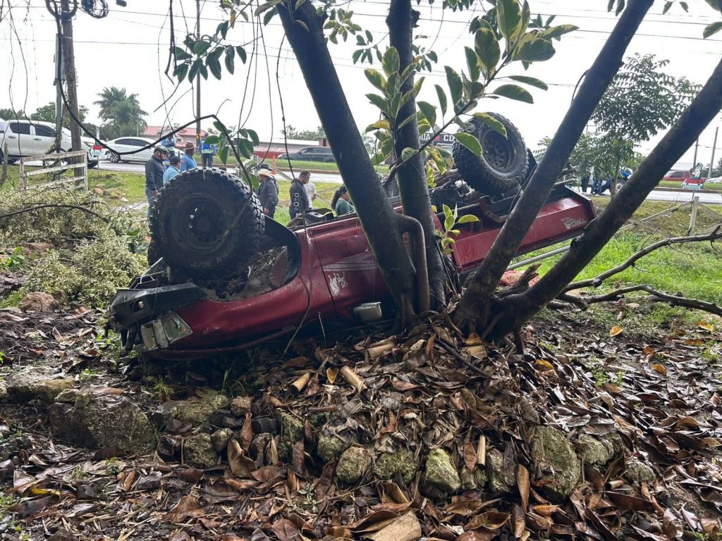 Siguatepeque 21 de diciembre del 2025-Cuerpo de Bomberos reporta accidente en donde acudieron al lugar procediendo a realizar una evaluación, observando un accidente vehicular tipo volcamiento en donde resultaron 3 personas lesionadas, de las cuales 2 fueron trasladadas por parte del Cuerpo de Bomberos.