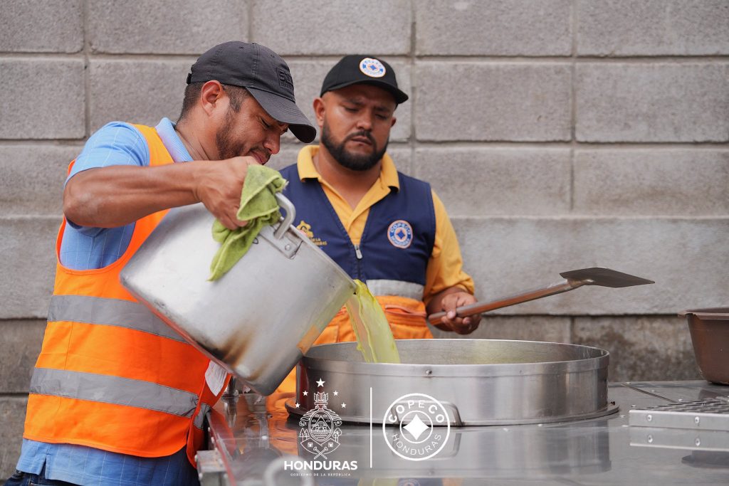 En esta emergencia producto de las lluvias, personal de la Regional VIII de COPECO, colaboran con autoridades de la Alcaldía Municipal del Distrito Central, en la elaboración de alimentos y suministro de agua potable para las familias que en este momento se encuentran en albergues.